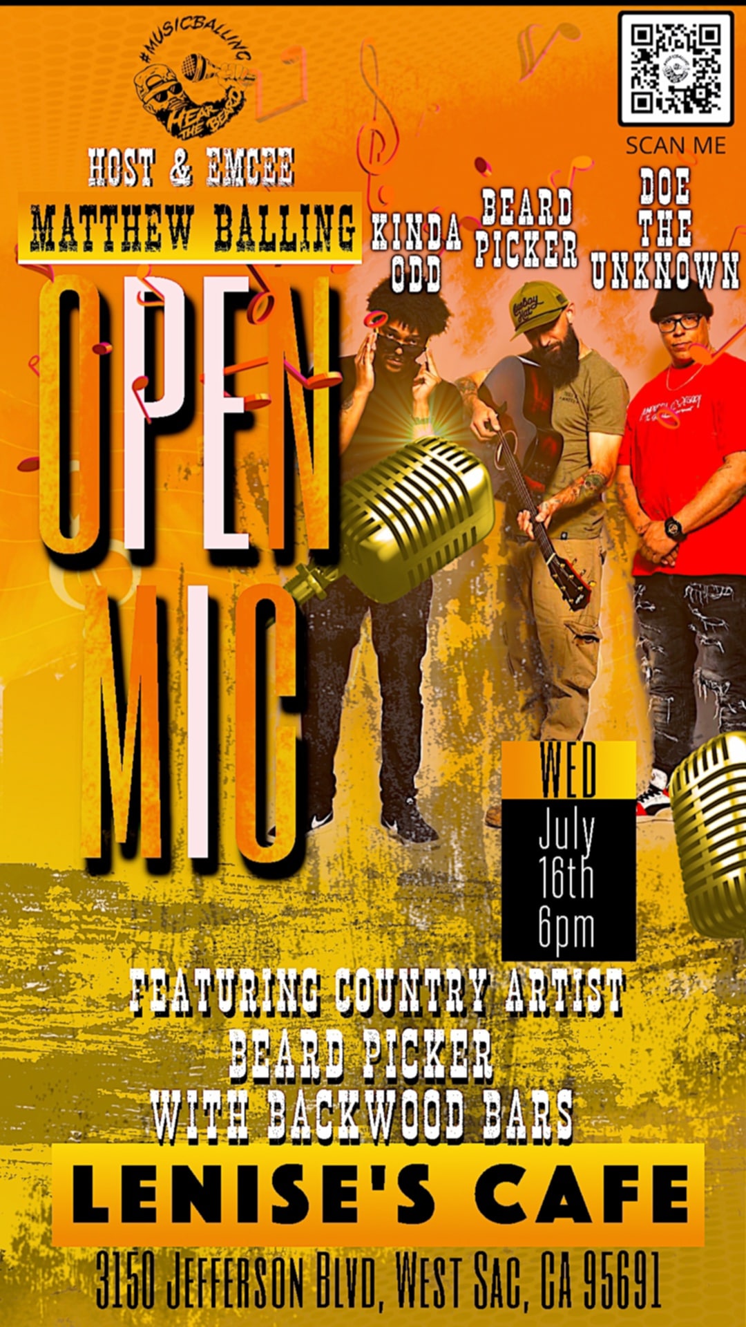![]() Host and EMCEE Matthew Balling Join us for an evening of artists!! Bring your talents to life and share your beauty with the world! There will be Music, Poetry, and Comedy!! Happy hour food and drinks will be available for purchase along with our regular menu. Featuring Country Artist Bear Picker with Backwood Bars |